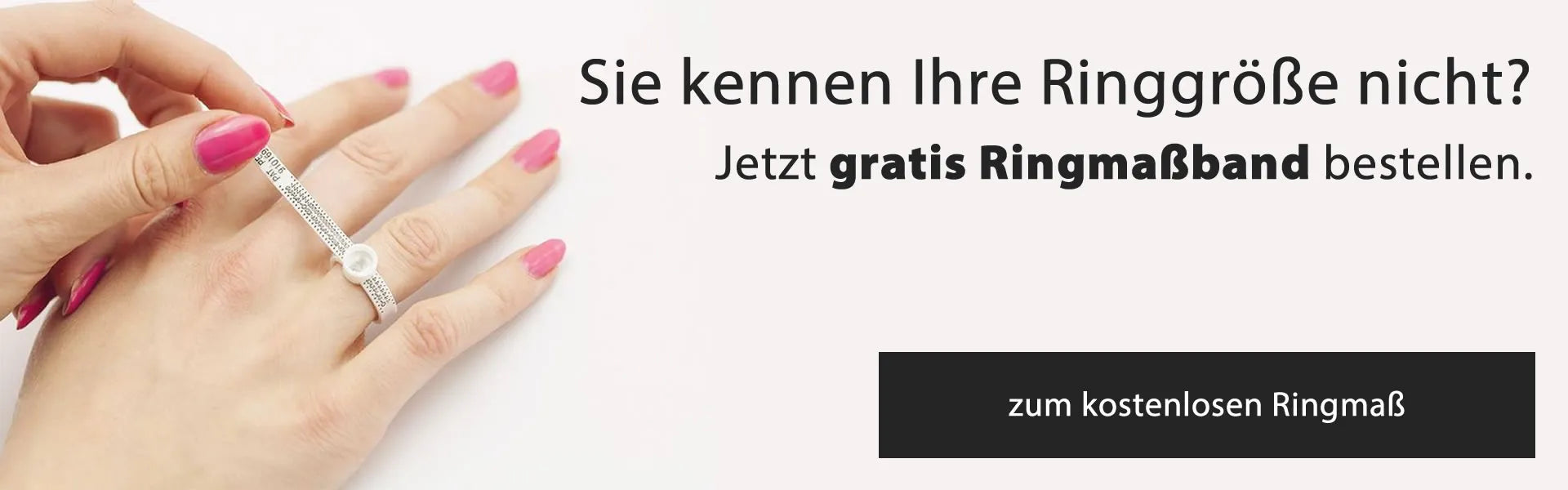 Falls Sie Ihre Ringgröße nicht wissen bestellen Sie hier ganz einfach Ihr kostenloses Ringmaßband. Nach Erhalt, schieben Sie das Ringmaßband wie einen Ring auf den Ringfinger. Die richtige Weite ist dann ermittelt, wenn das Ringmaßband bequem und sicher auf Ihrem Ringfinger sitzt. Da sich der Umfang der Finger bei z. B. Temperaturwechsel verändern kann, empfehlen wir Ihnen morgens und abends zu messen.